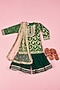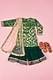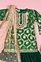 Featuring a green kurta for girls in brocade base. It is paired with matching velvet sharara pants and a net dupatta.