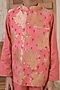 Featuring a multi-colored jacket for boys in silk blend base with woven floral detailing. It is paired with a muslin silk kurta and glace cotton pyjama pants. Accessorize this set with mojris and a watch for a stylish ensemble, ideal for ceremonial events or any festive occasion.