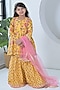 Yellow & Pink Chanderi Silk Floral Printed Sharara Set For Girls