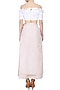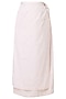 Featuring a beige wrap-around skirt, set in cotton base. It is appliqued with bugle bead hand embroidery on one side and thread work in a checkered pattern on the other. It has tie up detailing on the side.
