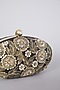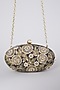 Featuring a black clutch in raw silk base with hand embroidery and sling chain. It has satin underlining.