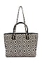 Featuring a black handcrafted tote bag in jacquard base with a long sling chain and diamond pattern. Style it with casual chic outfits, perfect for brunches and shopping trips.