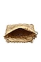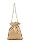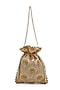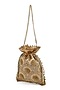 Featuring a gold potli in raw silk base with hand embroidery and a detachable sling chain. It has a satin lining.