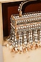 Featuring a gold handcrafted hanging box clutch in raw silk base. Style it with embellished lehengas or sarees for a refined look, making it ideal for wedding receptions, cocktail parties or festive celebrations.