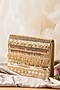 Featuring a golden handcrafted clutch in raw silk base with hand embroidery. It has a sling. Accentuate it with traditional or festive wear to add a rich, elegant touch, perfect for weddings, sangeet functions, festive celebrations or cultural events.