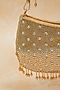 Featuring a golden handcrafted clutch in raw silk base with tassels detailing. Style it with elegant evening gowns, embellished lehengas or chic cocktail dresses for a refined look, making it ideal for wedding receptions, cocktail parties, festive celebrations or evening wear.