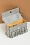 Featuring a grey handcrafted clutch in raw silk base. Style it with solid-toned ethnic or contemporary outfits, making it a stylish pick for festive gatherings, wedding functions, brunches or evening parties.