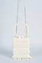 Featuring an ivory clutch in raw silk base with hand embroidery. It comes with a detachable sling chain and a satin lining.