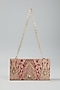 Featuring a pink clutch bag in raw silk base with hand embroidery. It has a detachable strap.