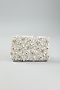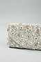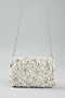 Featuring a white clutch bag in raw silk base with hand embroidery. It has a detachable strap.