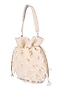 Featuring a white potli in raw silk base with hand embroidery. It has a detachable handle. A perfect styling accessory for all your pre-wedding events, be it haldi, mehndi, sangeet, gold being the epitome of luxury will perfectly blend in with any festive wear.