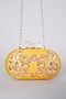 Featuring a yellow clutch in raw silk base with hand embroidery and sling chain. It has satin underlining.