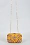 Featuring a yellow clutch in raw silk base with hand embroidery. It has a satin lining and a detachable chain.