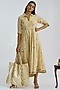 Featuring a beige dress in handloom khadi base with with screen print and pleated sleeves.