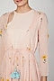 Featuring a blush pink dress in malkha and muslin silk base with print and embroidery. It has drawstring waistline, buttons, and keyhole neck opening.