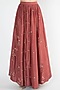 Brick Red Embroidered Halter Neck Blouse With Skirt