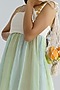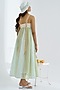 Featuring a green and blue striped dress in cotton mulmul base with floral hand embroidery.