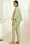 Featuring a green pleated top in linen base with front opening and floral embroidery. It is paired with matching pants.