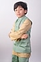 Mint Green Pure Cotton Satin Nehru Jacket Set For Boys