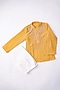 Mustard Yellow Chanderi Pearl & Mirror Embroidered Kurta Set For Boys