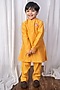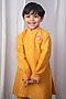 Mustard Yellow Chanderi Thread Hand Embroidered Kurta Set For Boys