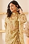 Featuring a sage tunic in paper silk and chanderi base with cowls. It is paired with matching pants.