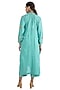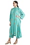 Featuring a turquoise kurta in cotton mul base with gathered high neck, handmade tassels and hand embroidery. It is paired with matching trouser pants and inner.