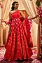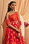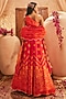 Featuring a fiery red and orange anarkali in silk base with hand embroidery and print. It is paired with a scalloped dupatta. Accentuate with statement earrings and heels for festive occasions or wedding ceremonies.