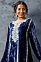 Featuring a midnight blue kurta in velvet base with pearl, opal, crystal, and zardosi hand embroidery. It is paired with a contrasting white silk modal dhoti.