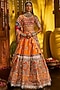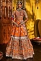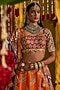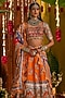 Featuring an orange lehenga in silk base with hand embroidery. It is paired with an embellished blouse, including a blue and pink dupatta. Accentuate the designer lehenga with statement jewellery and heels for a wedding, engagement or sangeet ceremony.