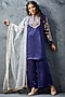 Featuring a purple kurta in silk satin base with gota patti hand embroidery. It is paired with matching pants and a white net dupatta.