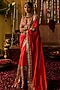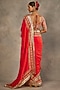Featuring a red draped saree in silk base with hand embroidery. It is paired with an embroidered blouse. Accentuate it with silver jewellery and embellished heels for a festive occasion, sangeet or wedding ceremony.