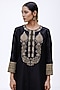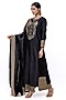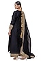 Featuring a black kurta in pure silk and pure organza base with zardosi work. It is paired with pants and a dupatta. Accentuate it with dangler earrings and heels for a festive occasion.