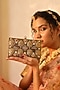 Featuring a gold handcrafted clutch in metal base. It has a detachable chain strap. A perfect companion for weddings and evening soirees, this piece exudes sophistication and complements every ensemble effortlessly.