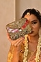 Featuring a gold handcrafted clutch in metal base. It has a detachable chain strap. A perfect companion for weddings and evening soirees, this piece exudes sophistication and complements every ensemble effortlessly.
