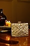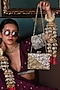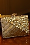 Featuring a gold handcrafted clutch in metal base with sequins embellishments. It has a suede lining and comes with a detachable chain strap.