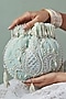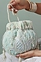 Featuring an ice blue handcrafted potli in velvet base with hand embroidery. It has a velvet lining and a pearl handle. Style it with any traditional outfit for a wedding or festive occasion.