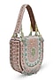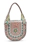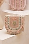 Featuring a peach handcrafted structured bags in suede base. It has a detachable chain strap. A perfect companion for weddings and evening soirees, this piece exudes sophistication and complements every ensemble effortlessly.