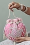 Featuring a pink handcrafted potli in velvet base with hand embroidery. It has a velvet lining and a pearl handle. Style it with any traditional outfit for a wedding or festive occasion.