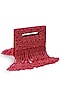 Featuring a red handcrafted structured bags in suede base. It has a detachable chain strap. A perfect companion for weddings and evening soirees, this piece exudes sophistication and complements every ensemble effortlessly.