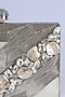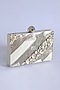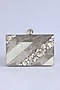 Featuring a silver handcrafted clutch in metal base with mother of pearl and sequins embellishments. It has a suede lining.