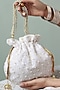 Featuring a white handcrafted potli in raw silk base with pearl hand embroidery. It has a raw silk lining. Style it with any traditional outfit for a wedding or festive occasion.
