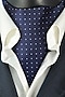 Featuring a navy cravat in microfiber base with printed polka dots.