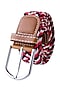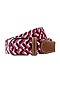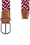 Featuring a red elasticated belt in woven silk and rayon base with leather trim and brushed nickel buckle.