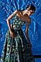 Featuring an emerald green lehenga in satin dupion base with floral print. It is paired with an embroidered off-shoulder corset. Accentuate it with diamond jewellery and block heels for mehendi, engagement ceremonies or weddings.