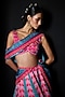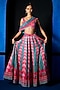 Pink & Teal Blue Satin Dupion Printed Lehenga Set
