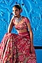 Featuring a red lehenga in satin dupion base with floral print, including cutdana, beads and sequins hand embroidery. It is paired with an embroidered and floral printed blouse and an embroidered habutai dupatta. Accentuate it with diamond jewellery and block heels for sangeet, engagement ceremonies or weddings.