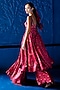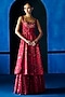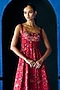 Featuring a red anarkali in satin organza base with floral print. It is paired with an embroidered bustier and floral printed sharara pants. Accentuate it with diamond jewellery and block heels for sangeet, engagement ceremonies or weddings.