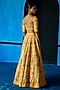 Featuring a yellow lehenga in satin dupion base with floral print, including cutdana, beads and sequins hand embroidery. It is paired with an embroidered blouse and an embroidered habutai dupatta. Accentuate it with diamond jewellery and block heels for haldi, engagement ceremonies or weddings.