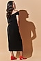 Featuring a black off shoulder midi dress in viscose base with draped bodice.